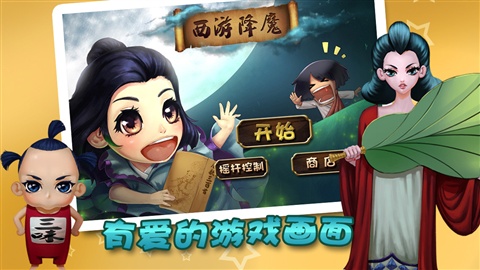 《西游降魔》讲述了一个奇幻的游戏故事:在一个妖魔横行的世界,百姓苦不堪言,年轻的唐僧以"舍小我,成大我"的无畏精神,为救天下苍生于水火,踏上了西游之路。该游戏故事源于经典剧情,却创意改编为休闲玩法,用重力感应模式操作游戏,将剧情画面转为Q版移至手机平台,使玩家在愉悦轻松的氛围下体验西游降魔之旅。