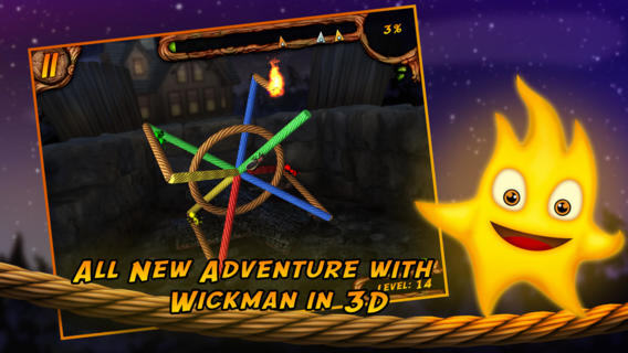 绳子开始燃烧,帮助Wickman刷旋转棘手的3 d游戏,让火焰继续燃烧下去。