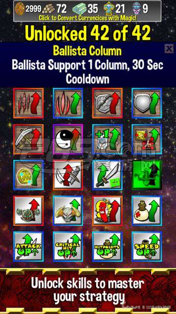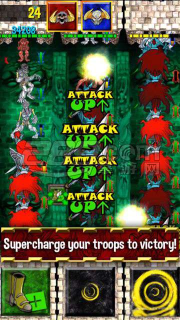 在游戏中,每个单位都有着自己独特的能力与相对应的颜色属性,你需要合理的运用屏幕下方滚动着"红黄蓝绿"的颜色的随机法术,强化你的队伍或是弱化对手逐渐积累优势,若是所施展与场上队伍颜色相对应的法,则会产生额外的特殊效果,譬如场上红色单位攻速加倍,黄色队伍防御减半等。由于对于上场的单位及法术同颜色数量有所管制,以及大部分法术具有"双刃剑"的特性,如何合理的搭配与使用两者?这正是《Tower Rumble》这款游戏MOBA塔防游戏所要强调的匹配和吊索您不断变化的法术栈,以支持您的军队取得了胜利。用4丰富多彩的外观和42可定制能力和权力的企业自定义你的军队。对战同一设备上的朋友有两种游戏模式。跨Artyficia运动独奏争夺唯一的老板。升级塔解锁你的军队的全部潜力。